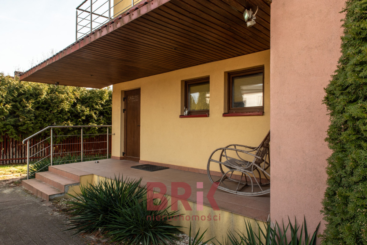 Budynek mieszkalny jednorodzinny z oddzielnymi wejściami i klatkami schodowymi do części mieszkalnej i części usługowej.