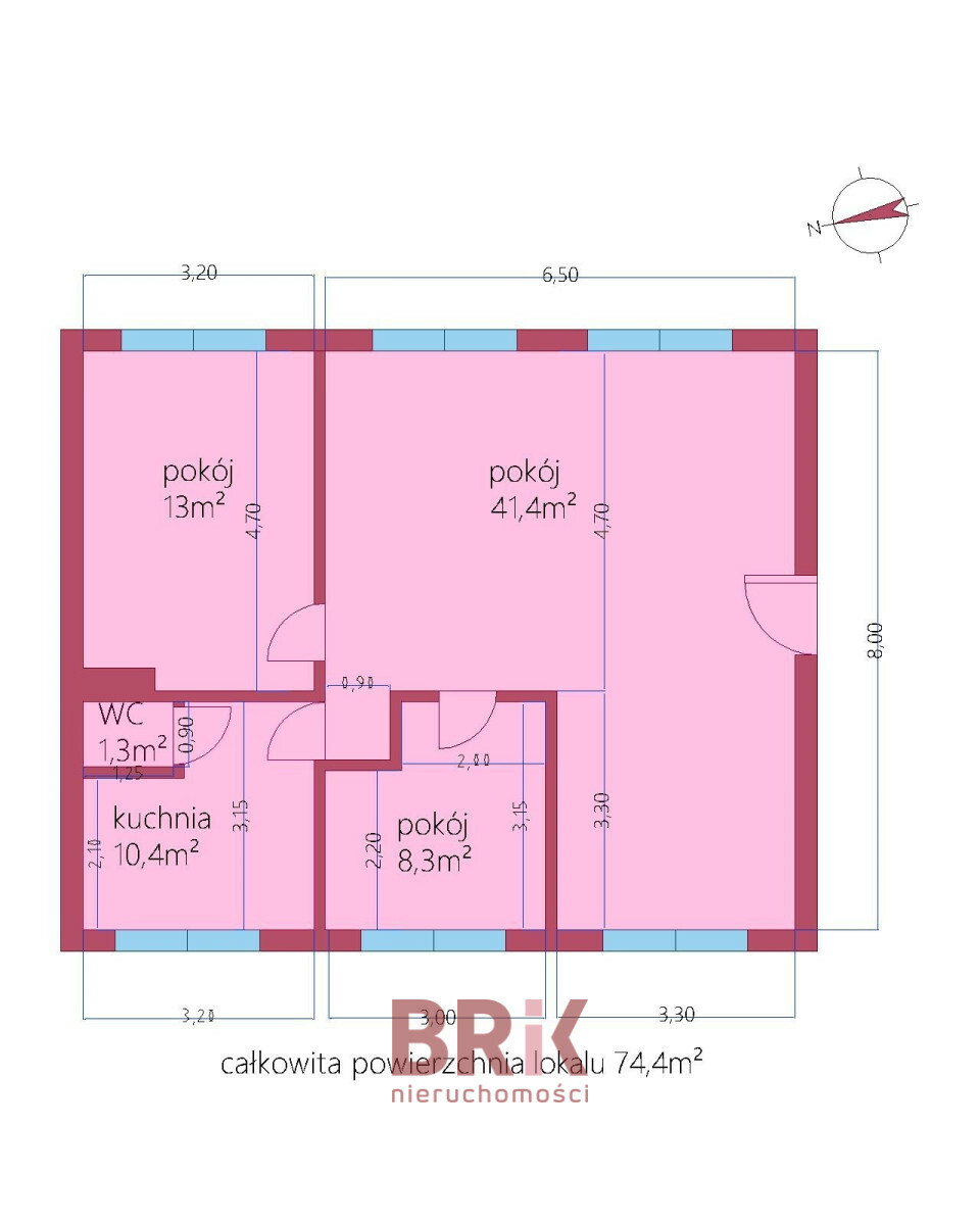 -dwóch pokoi kolejno 13m2 oraz 8,3m2