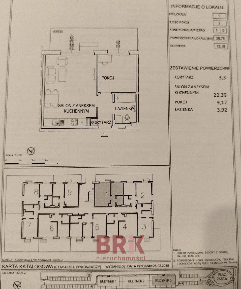 Na sprzedaż funkcjonalne i jasne 2-pokojowe mieszkanie o dokładnej powierzchni 38,76 m² wraz z przynależnym ogródkiem około 13 m². Nieruchomość zlokalizowana na kameralnym, zamkniętym i zadbanym osiedlu przy ul. Kartograficznej 82B, na warszawskiej Białołęce. Bardzo spokojna i cicha okolica, z dala od ruchliwej ulicy.