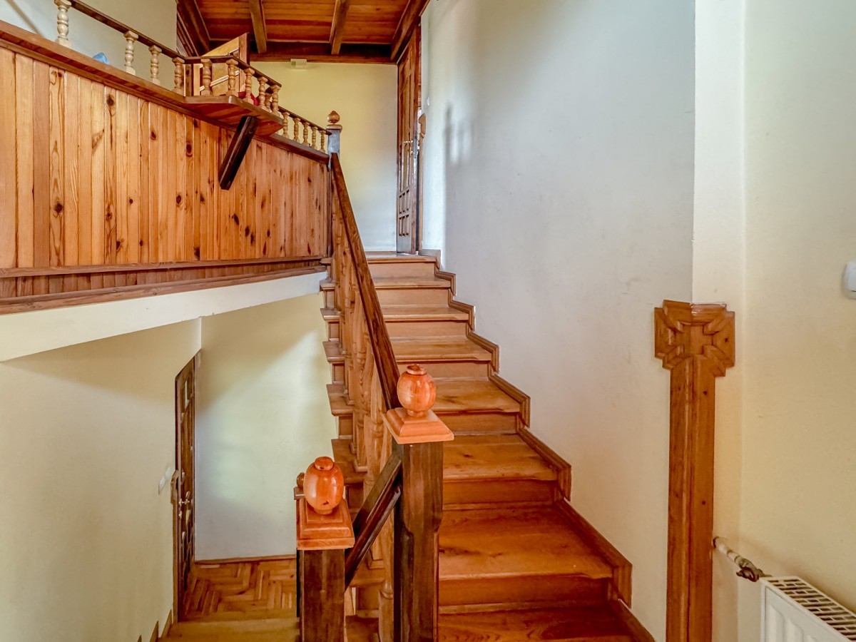 Dom został wybudowany w 1981 roku. Wnętrze nieruchomości w dużym stopniu wykończone jest drewnem oraz sztukaterią, co nadaje mu klasyczny i elegancki charakter. Na podłogach znajdują się terakota, drewniana klepka oraz lita deska, w zależności od pomieszczenia. Klatka schodowa również została wykończona drewnem.