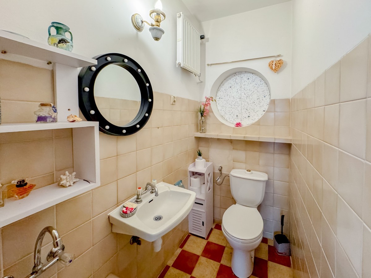 Dom wymaga zadbania i delikatnego odświeżenia, co daje nowemu właścicielowi możliwość dostosowania wnętrz do własnych potrzeb i gustu. Nieruchomość posiada liczne powierzchnie gospodarcze, które można zaadaptować według własnych potrzeb. Szczególną uwagę zwraca sala/magazyn o powierzchni 97 m², znajdująca się w piwnicy, z osobnym wejściem z zewnątrz, co stwarza możliwość prowadzenia działalności gospodarczej.