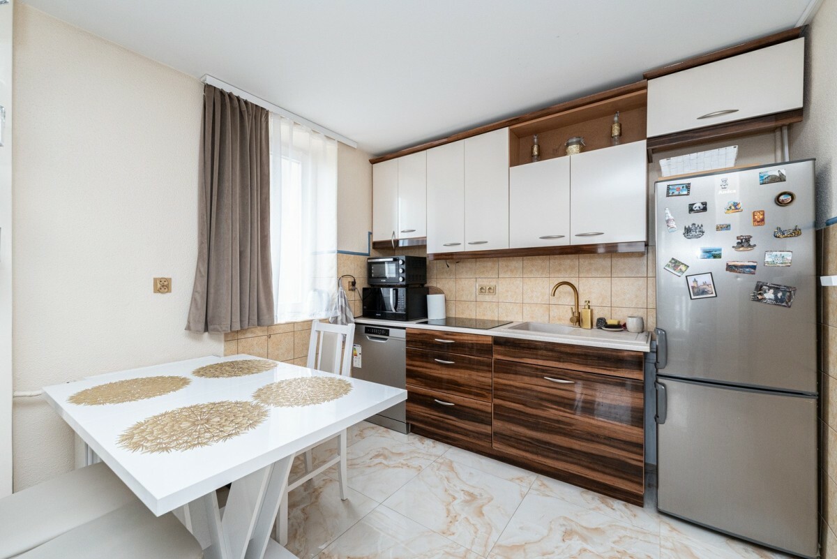Kuchnia w zabudowie z niezbędnymi sprzętami AGD.