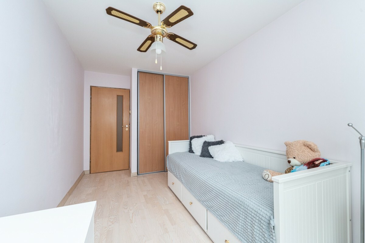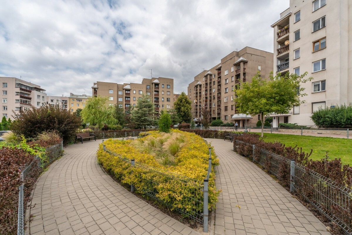 Mieszkanie narożne, jasne, z ekspozycją południowo-zachodnią z oknami wychodzącymi na ciche patio. 5 lat temu położono płytki w salonie i przedpokoju oraz panele w sypialni, a także wymieniono fronty w kuchni. W mieszkaniu w cenie mogą pozostać również dwuletnie meble, m.in. składane łóżko i kanapa w salonie, łóżko w sypialni oraz meble w przedpokoju.