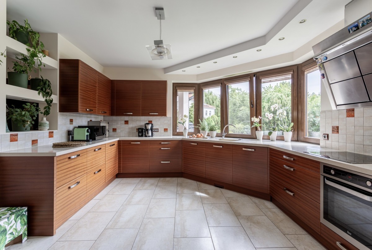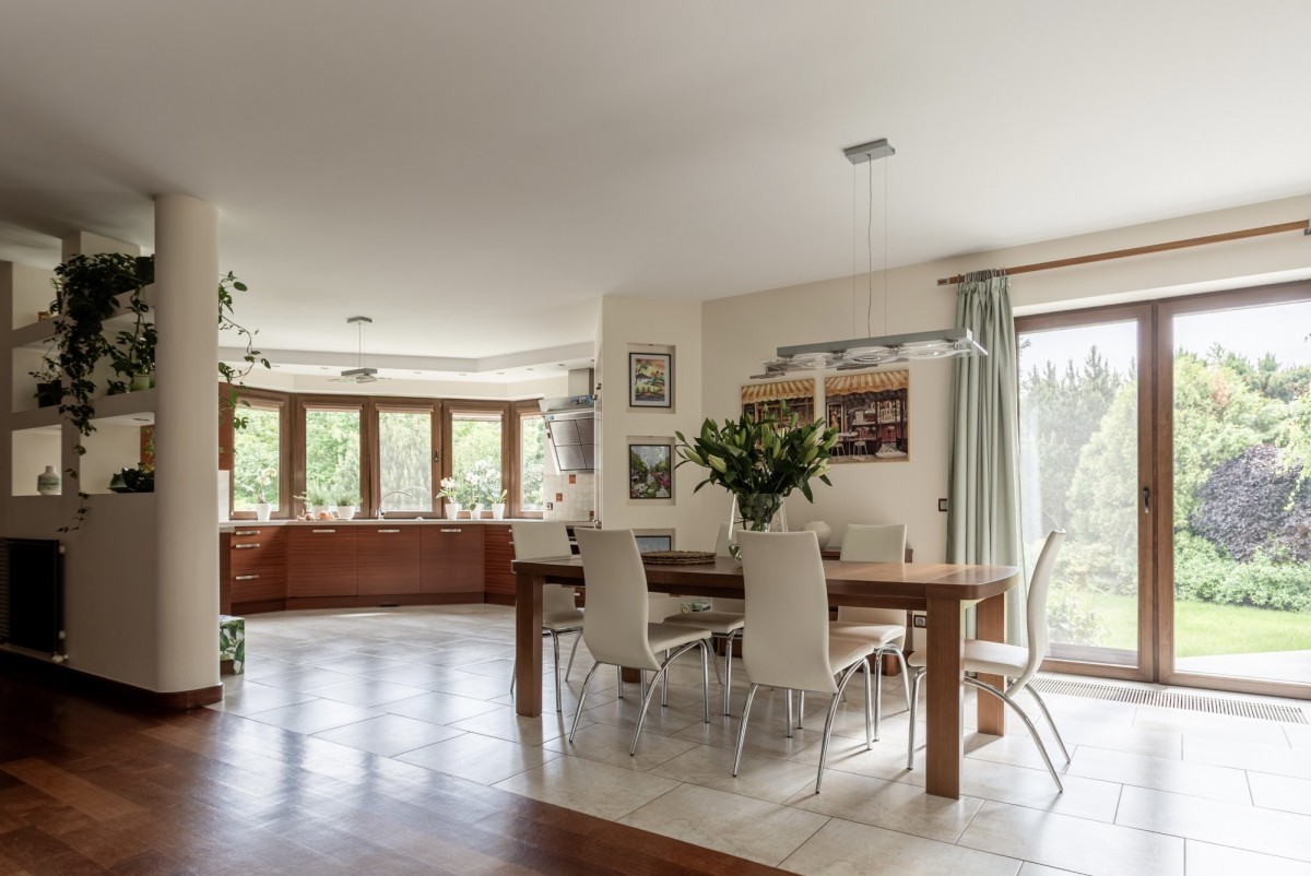 Dom wyposażony jest w ogrzewanie podłogowe w kuchni, jadalni oraz łazienkach. Centralny system odkurzania zwiększa wygodę codziennego użytkowania. O bezpieczeństwo dba system alarmowy obejmujący zarówno wnętrze, jak i teren wokół budynku.
