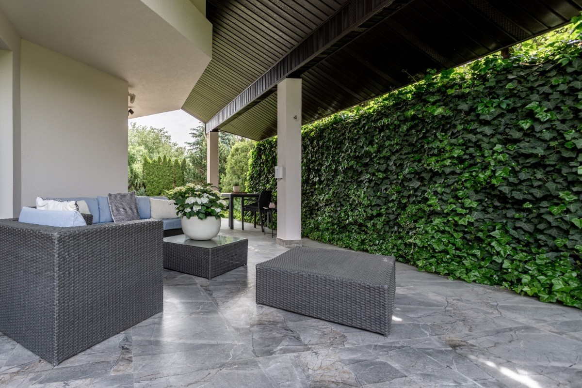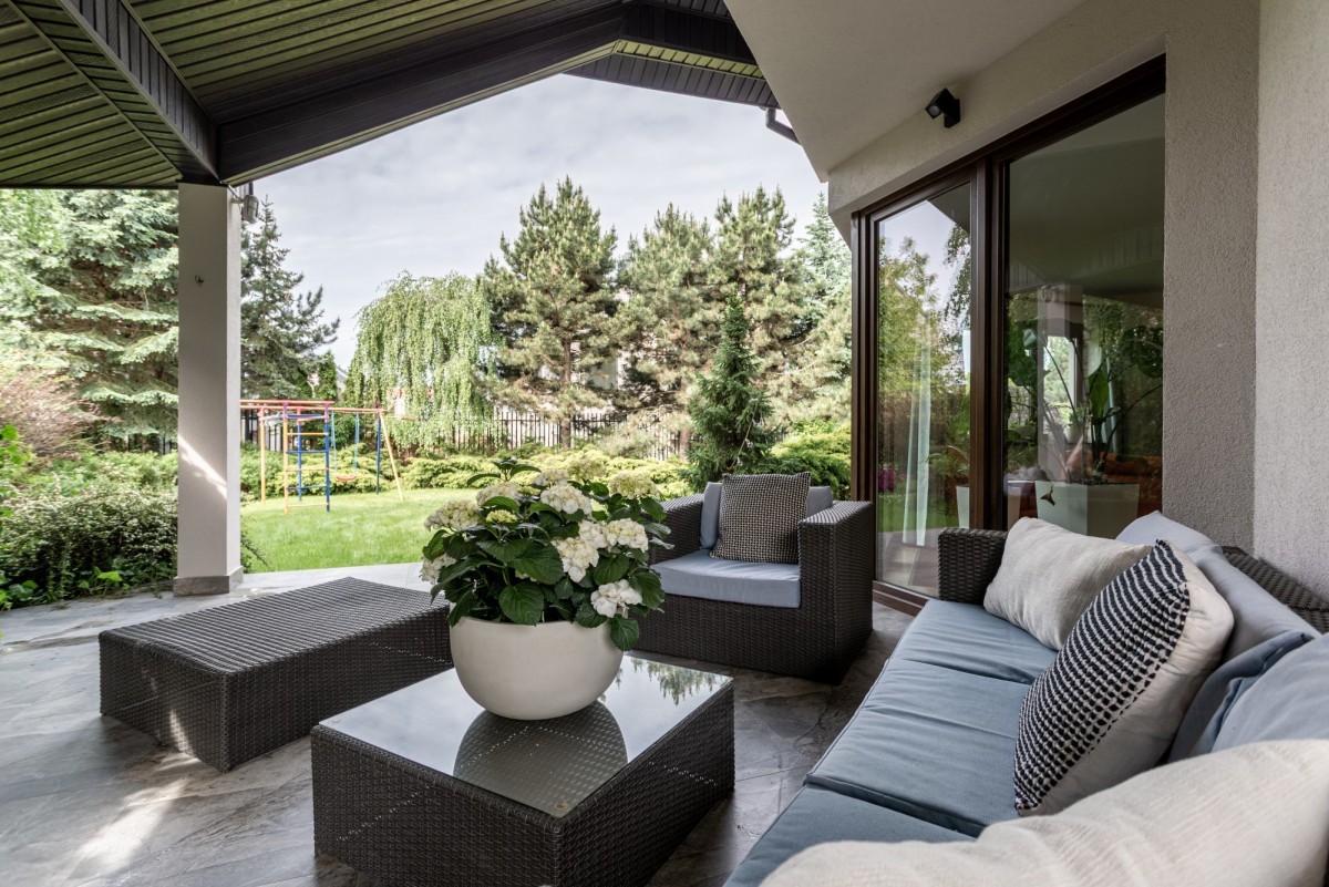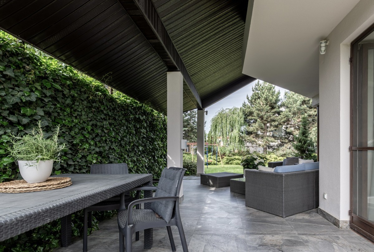 Ogród posiada system automatycznego podlewania oraz oświetlenie, co pozwala na korzystanie z tej przestrzeni również wieczorem. Na podjeździe przewidziano miejsce do zaparkowania dodatkowych dwóch samochodów.