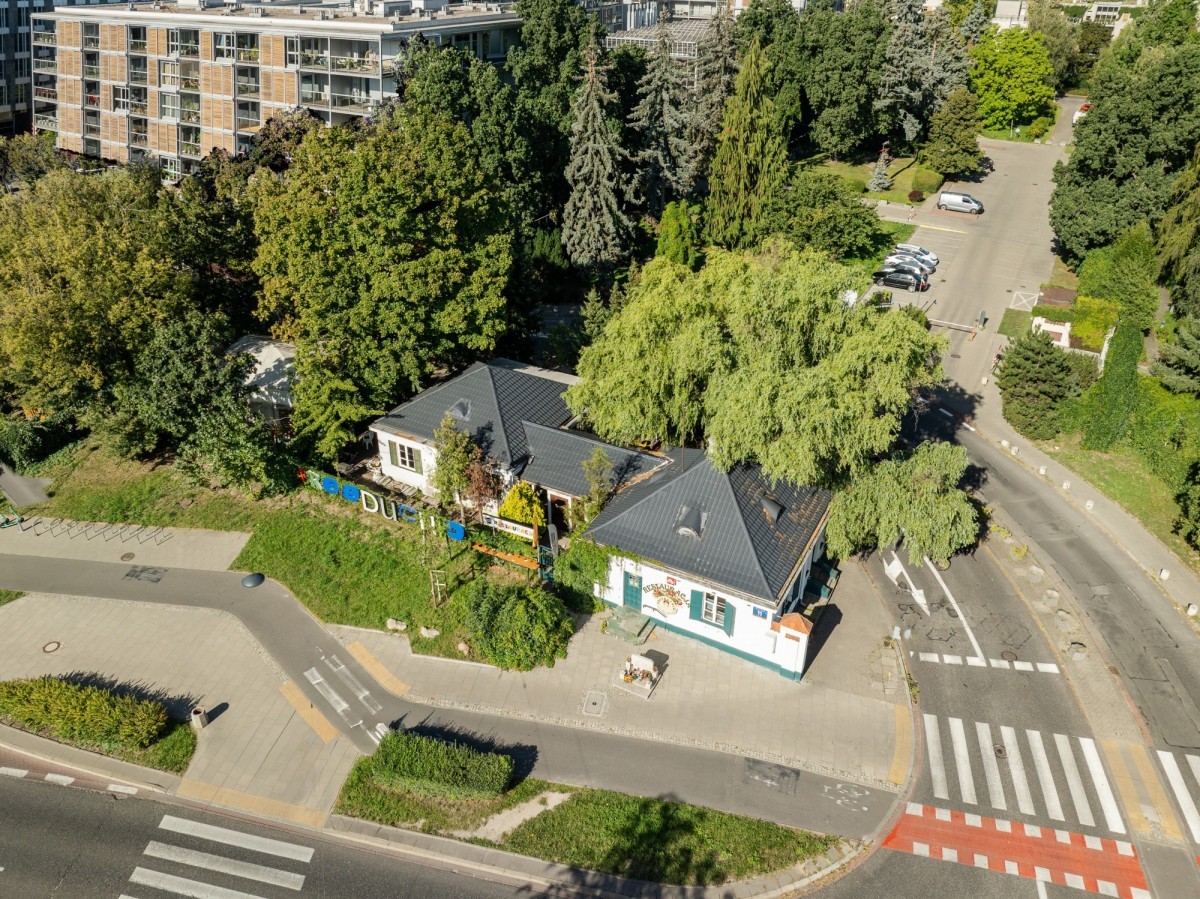 Na sprzedaż wyjątkowa działka o powierzchni ok. 810 m², położona na Górnym Mokotowie, między ulicami Stanisława Żaryna i św. Andrzeja Boboli. Nieruchomość jest zabudowana zabytkową stróżówką o powierzchni 80 m², krytą spadzistym dachem, rozbudowaną w 2008 roku o dodatkowe 115 m², łącznie 195 m² powierzchni zabudowy. Obiekt funkcjonował jako restauracja znana pod nazwą „Biały Domek”.