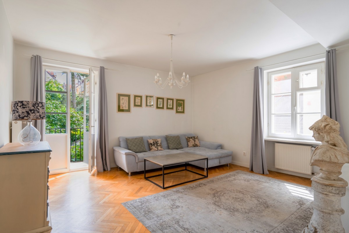 Mieszkanie \"Biały Kruk\" na warszawskiej Starówce w tak zwanym \"Małym Domku\". Mieszkanie znajduje się formalnie na 2 piętrze w budynku na skarpie natomiast z drugiej strony budynku jest wejście z parteru). Wnętrze charakteryzuje się funkcjonalnym rozkładem pomieszczeń zapewniającym wysoki komfort oraz potencjał aranżacyjny. Rzeczywista powierzchnia jest większa od ujawnionej w księdze wieczystej i wynosi 68 mkw. Mieszkanie z dużym sukcesem wynajmu się w najmie krótkoterminowym. Nieruchomość znajduje się w wyłącznej sprzedaży.