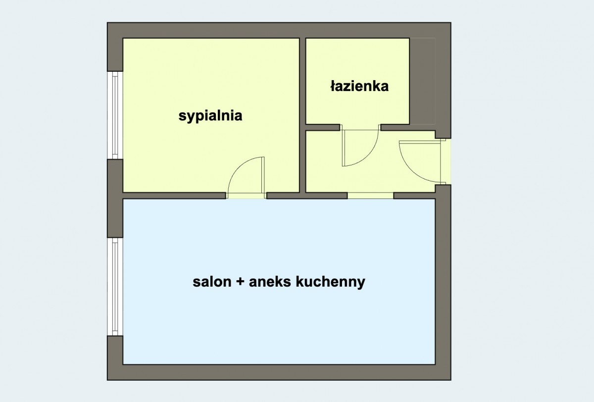 2 pokoje: salon z aneksem + sypialnia