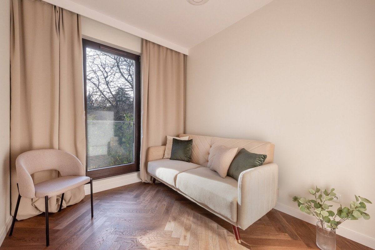 To zupełnie nowe, nigdy niezamieszkałe mieszkanie zachwyca perfekcyjnie zaprojektowaną przestrzenią, wysokim standardem wykończenia oraz widokiem na zieleń oraz ciszą, który zapewnia poczucie spokoju i prywatności - zaledwie 5 minut spacerem od malowniczych Stawów Cietrzewia.
