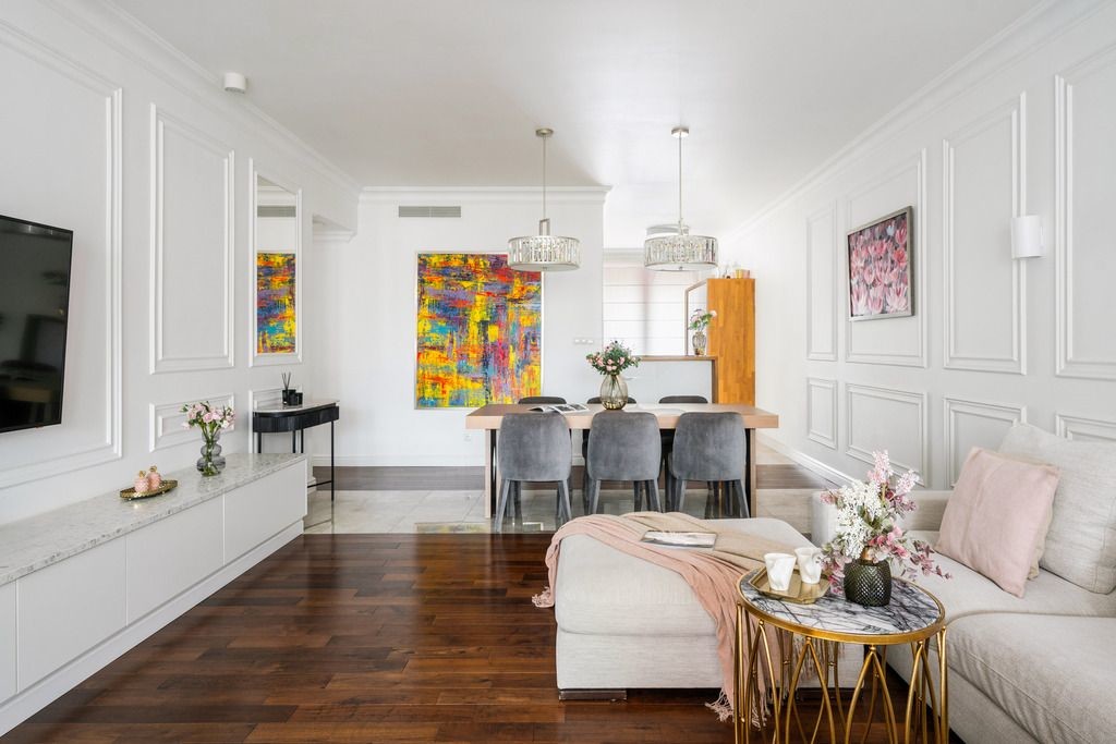 A spacious, elegant apartment for sale in the prestigious Wilanów One development, located at 19 Sarmacka Street in Miasteczko Wilanów.