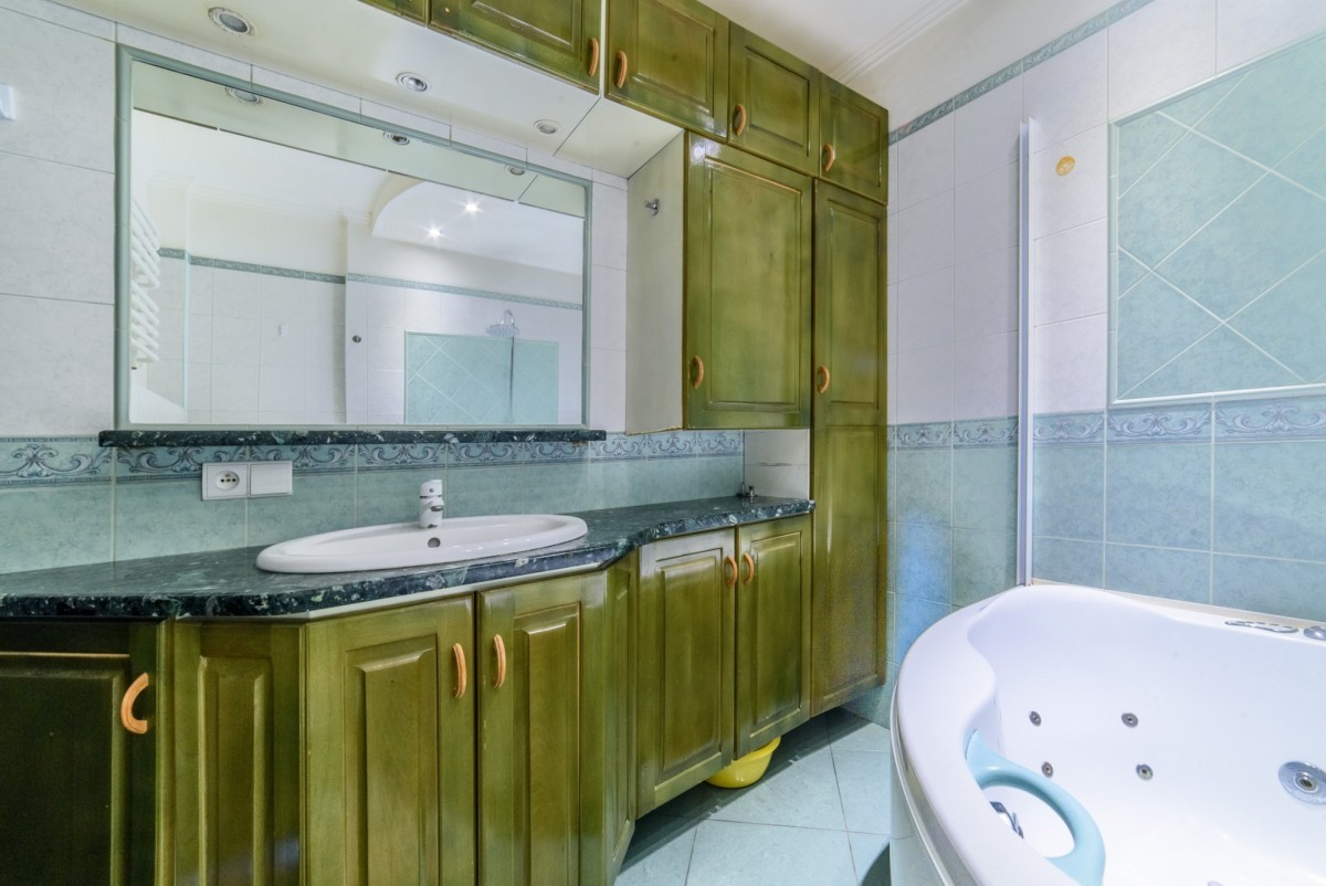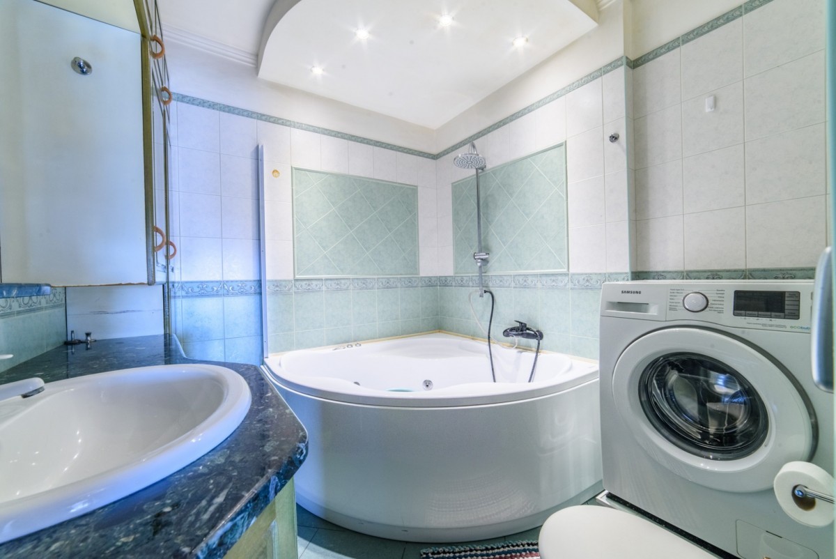 W łazience wanna z hydromasażem.