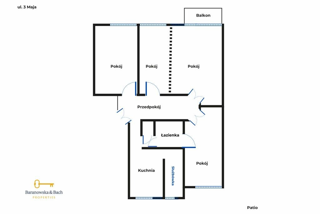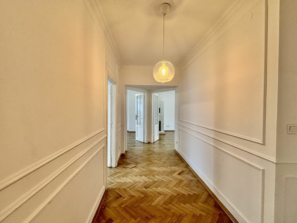 4 przestronne pokoje, oddzielna kuchnia, przestronny przedpokój, łazienka, wysokie, jasne wnętrza z odrestaurowanym dębowym parkietem, klasyczny układ pomieszczeń charakterystyczny dla przedwojennych kamienicoryginalna stolarka drzwiowa