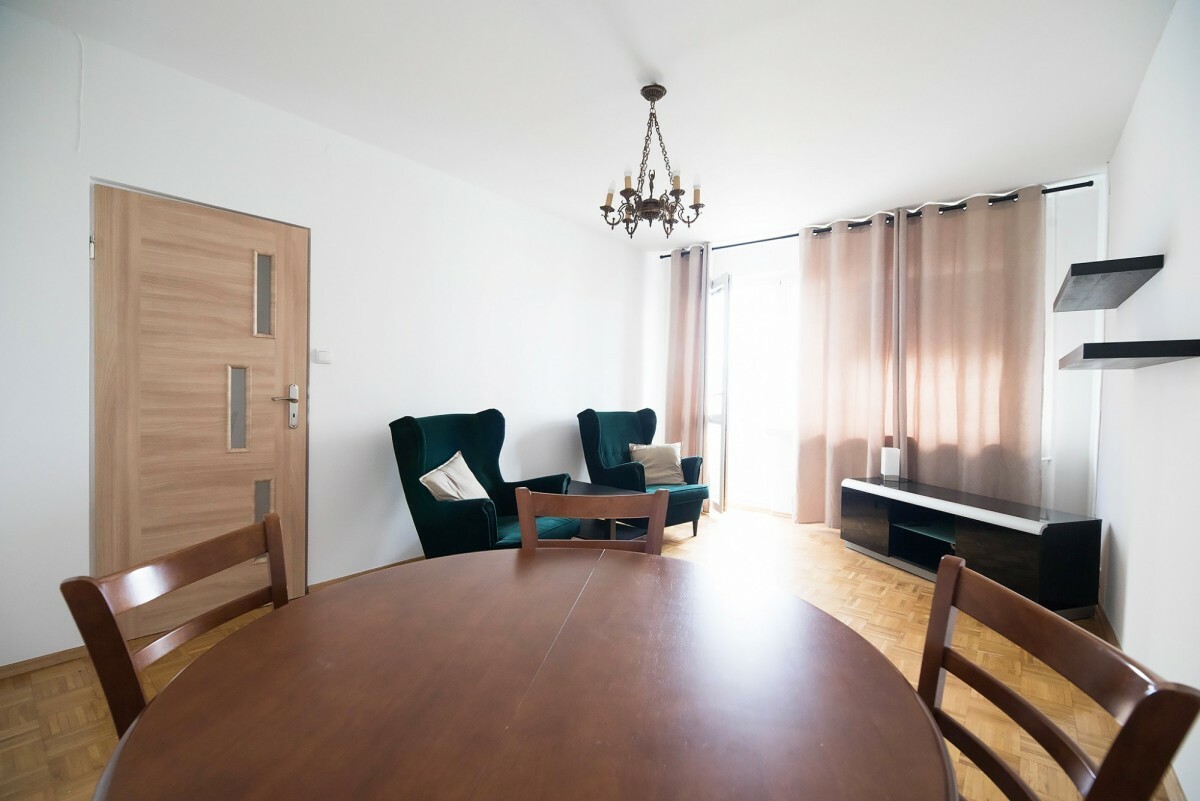 Stan/wykończenie: estetyczny, zadbany standard - jasne ściany, zachowany parkiet, kuchnia z podstawowym AGD, umeblowanie jak na zdjęciach; gotowe do wprowadzenia bez pilnego remontu