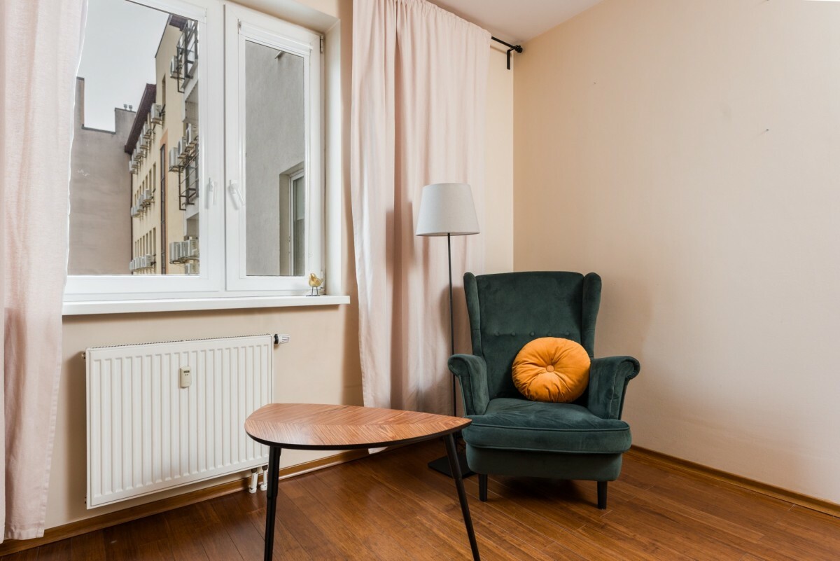 Mieszkanie zostało zaprojektowane w sposób wyjątkowo przemyślany - wyraźnie wydzielono strefę dzienną oraz prywatną, co zapewnia wygodę zarówno w codziennym funkcjonowaniu, jak i podczas pracy zdalnej. Lokal jest wyjątkowo cichy, mimo bliskości centrum miasta, co czyni go idealnym wyborem dla osób ceniących spokój.