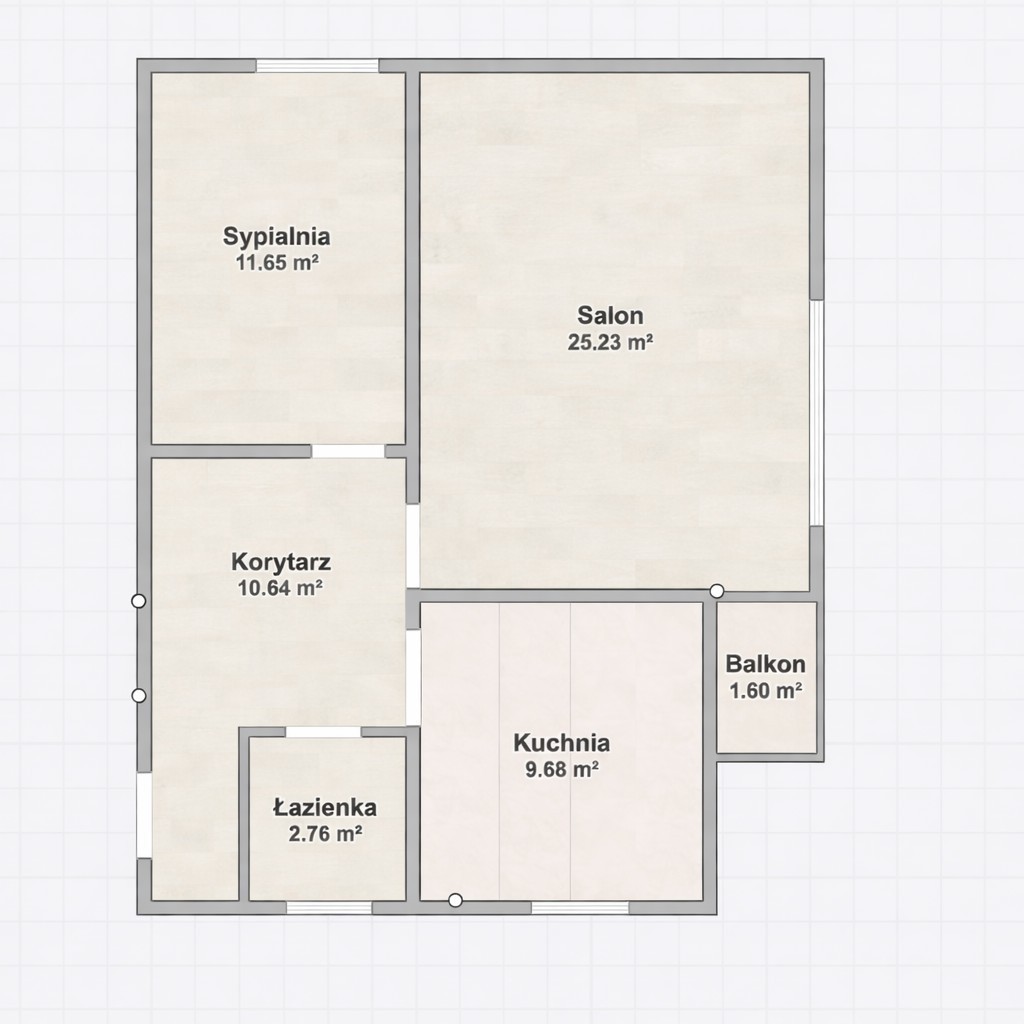 możliwość zmiany układu: kuchnia → pokój, salon → salon z aneksem
