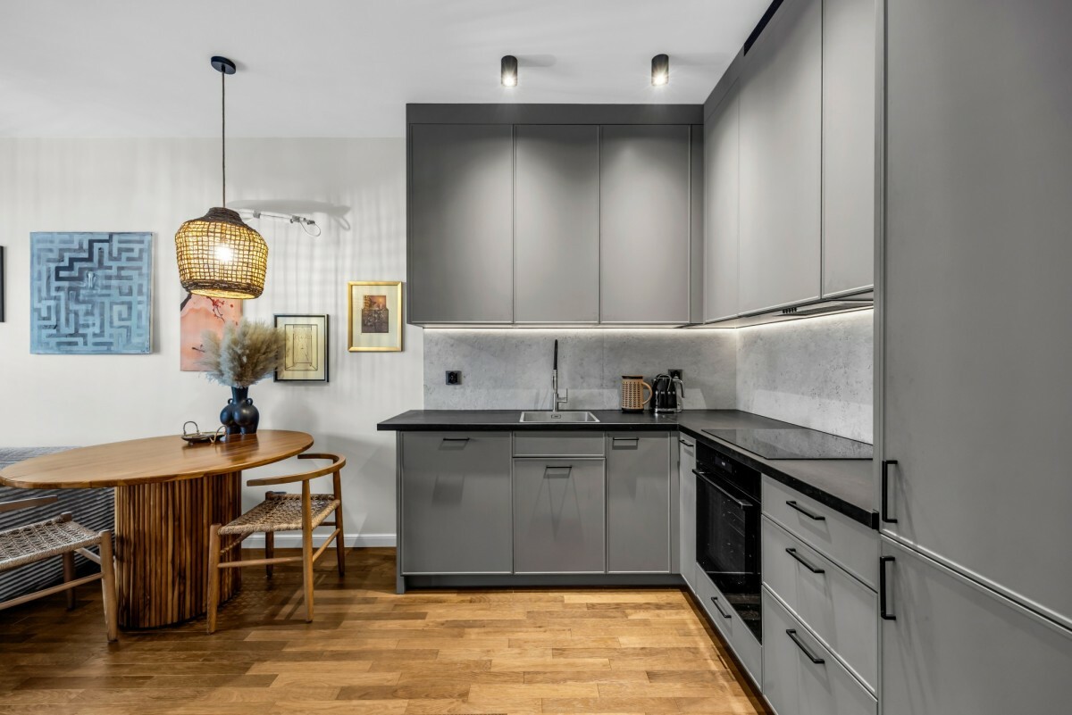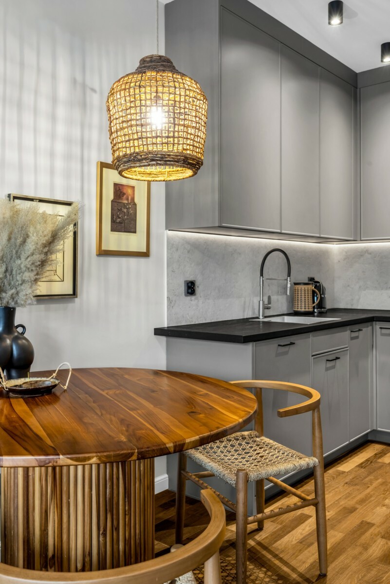 Mieszkanie wykończone z dbałością o detale, z użyciem materiałów wysokiej jakości: