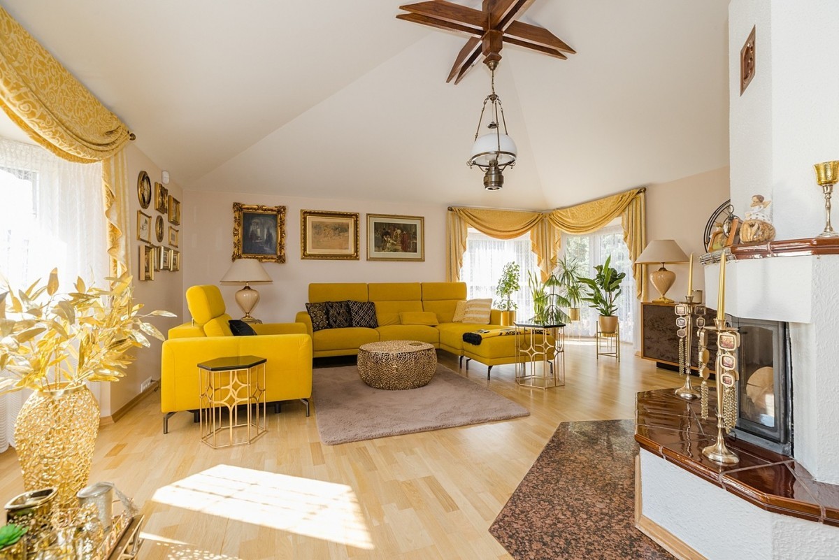 * salon z kominkiem 46 m²