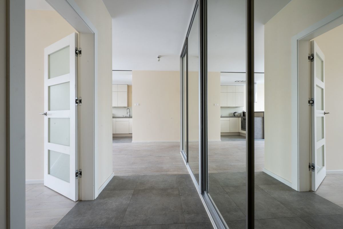 przedpokój z pojemną, 4-skrzydłową szafą w zabudowie