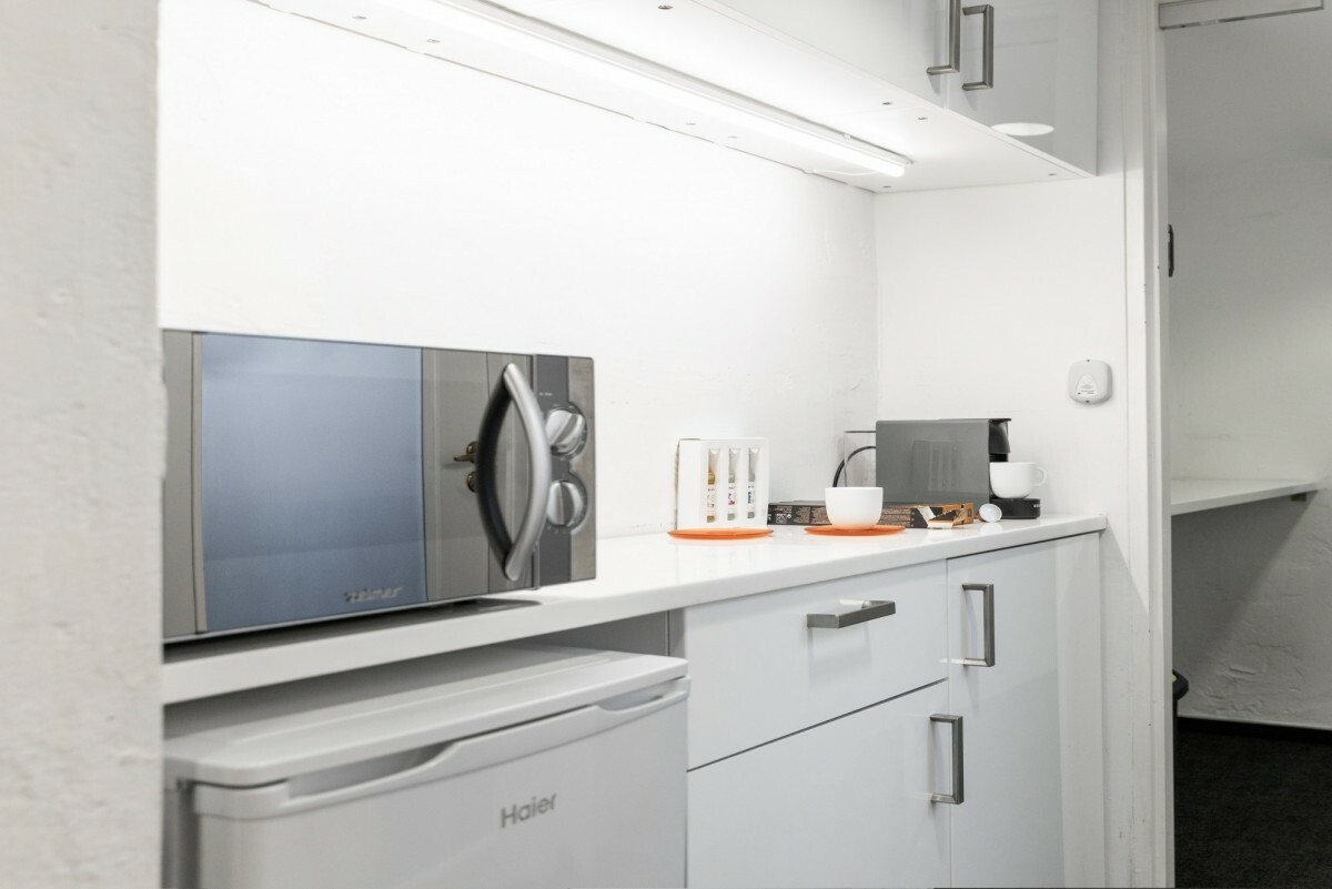 Wejście do lokalu jest z wewnętrznego korytarza (wspólne z jeszcze jednym lokalem). Dla tych 2 lokali jest wspólna kuchnia, toaleta oraz sala konferencyjna, z której można korzystać po wcześniejszych ustaleniach.