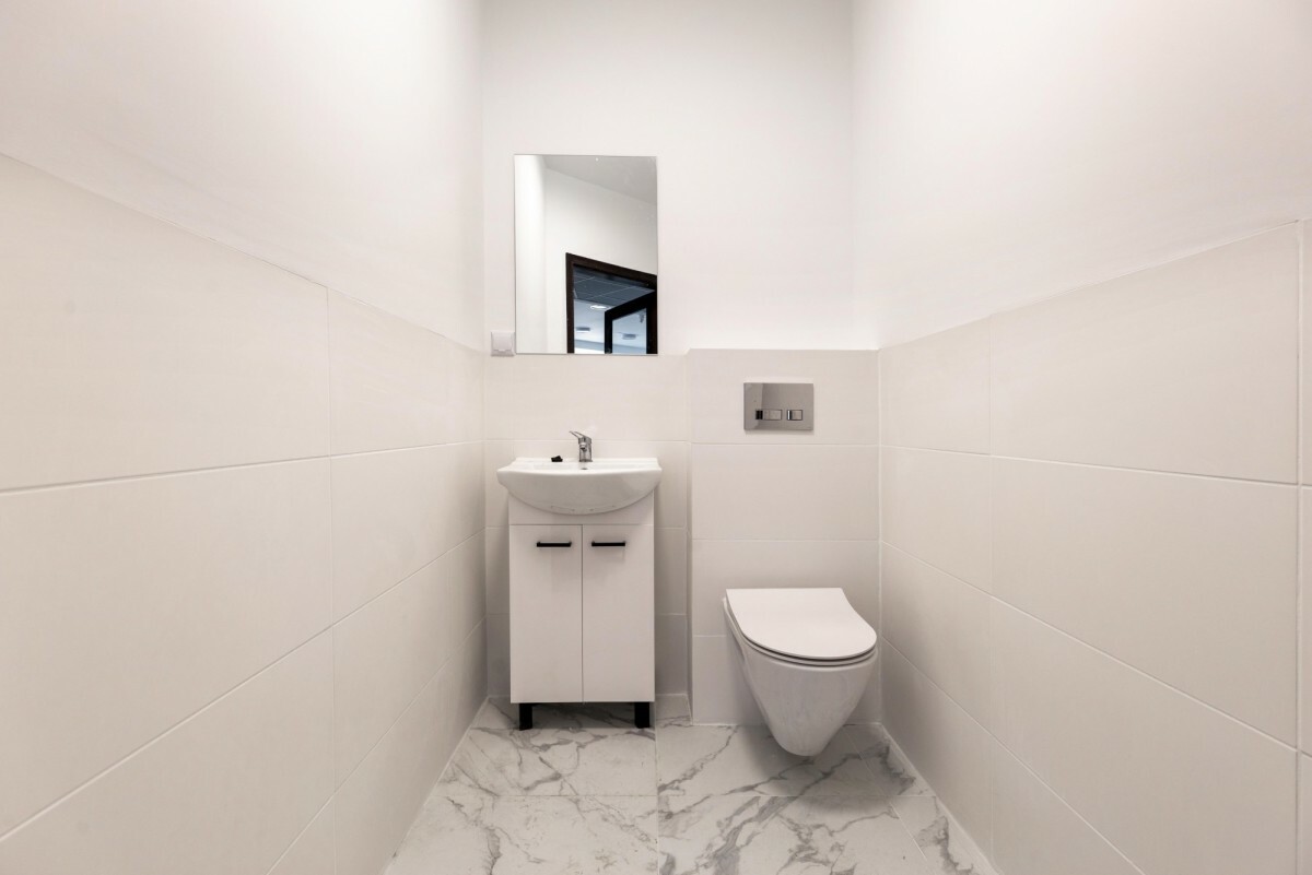 Przestrzeń została zaprojektowana z myślą o maksymalnej funkcjonalności. Otwarty układ umożliwia swobodną organizację stanowisk pracy, wydzielenie sali konferencyjnej czy gabinetu według potrzeb najemcy.