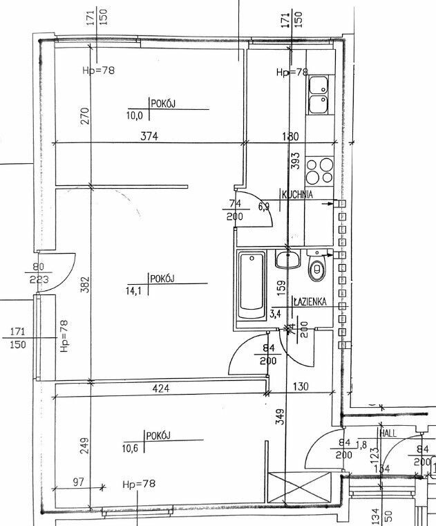 Obecny układ to 3 pokoje (największy pokój jest pokojem przechodnim oraz oddzielna jasna kuchnia i łazienka.