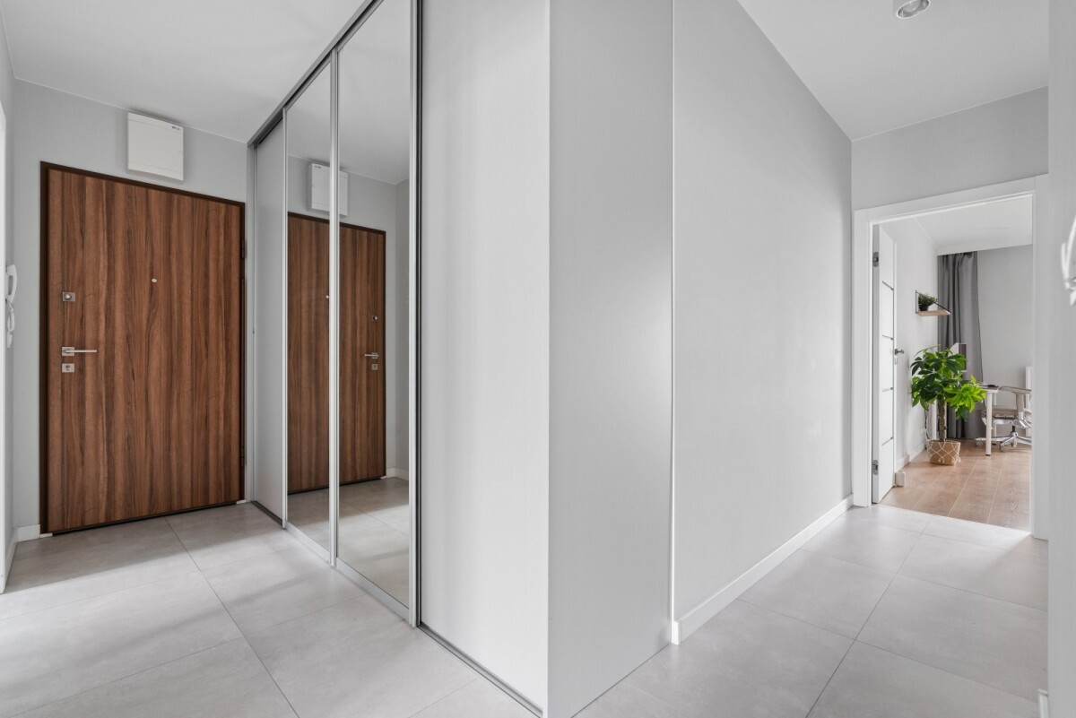 W skład mieszkania wchodzi salon o powierzchni 17 m², dwie sypialnie 13 m² i 10,5 m², oddzielna kuchnia z miejscem do spożywania posiłków, łazienka oraz przedpokój z dużą, czterodrzwiową szafą. Taki układ doskonale sprawdzi się zarówno dla rodziny, jak i przy wynajmie.