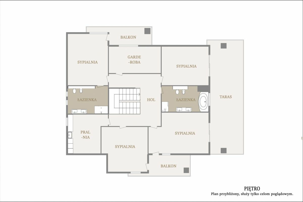 • Wszystkie sypialnie z dostępem do zadaszonego tarasu