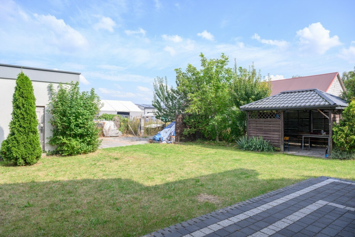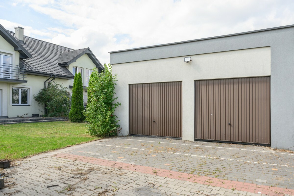 Na działce znajduje się dodatkowo murowany garaż wolnostojący z dwiema bramami o powierzchni około 70 m² oraz drewniana altana.