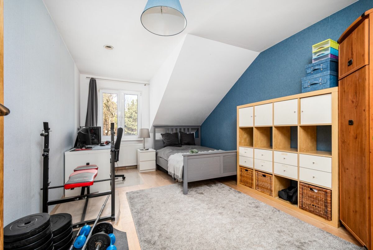 Oferujemy zadbany dom w zabudowie szeregowej, usytuowany na działce z ogrodem o powierzchni 211 m². Nieruchomość składa się z dwóch kondygnacji (parter + piętro) oraz funkcjonalnego poddasza, które zapewnia dodatkową przestrzeń do przechowywania.